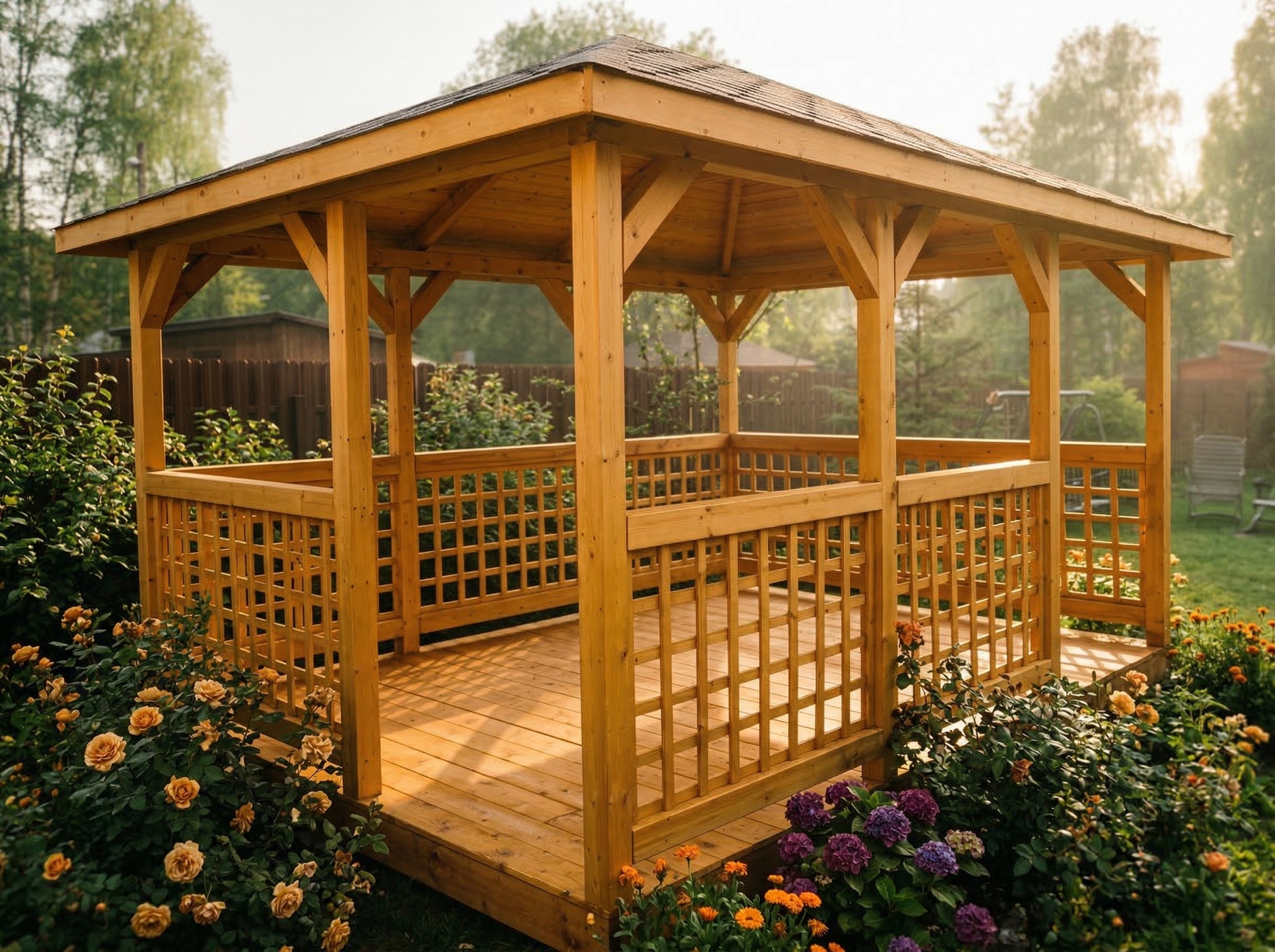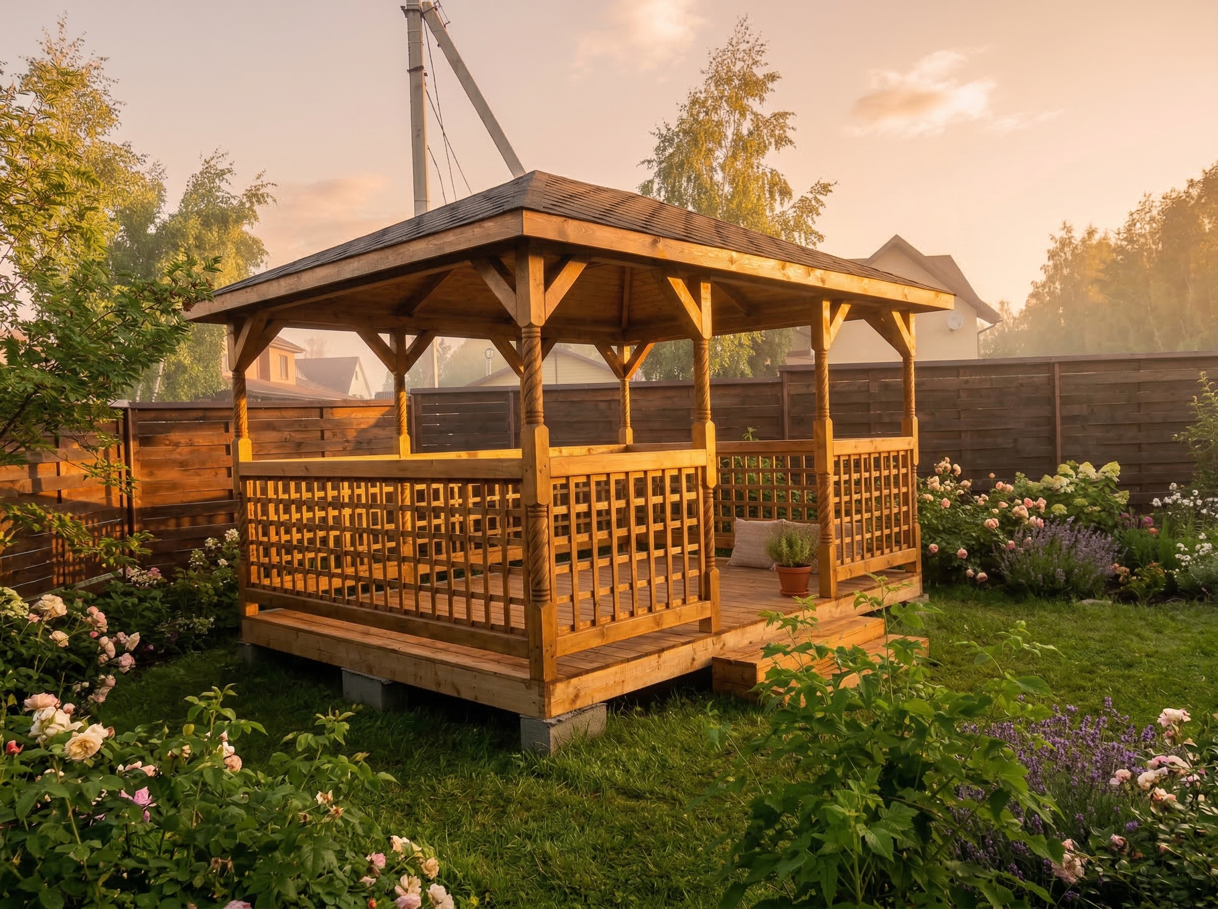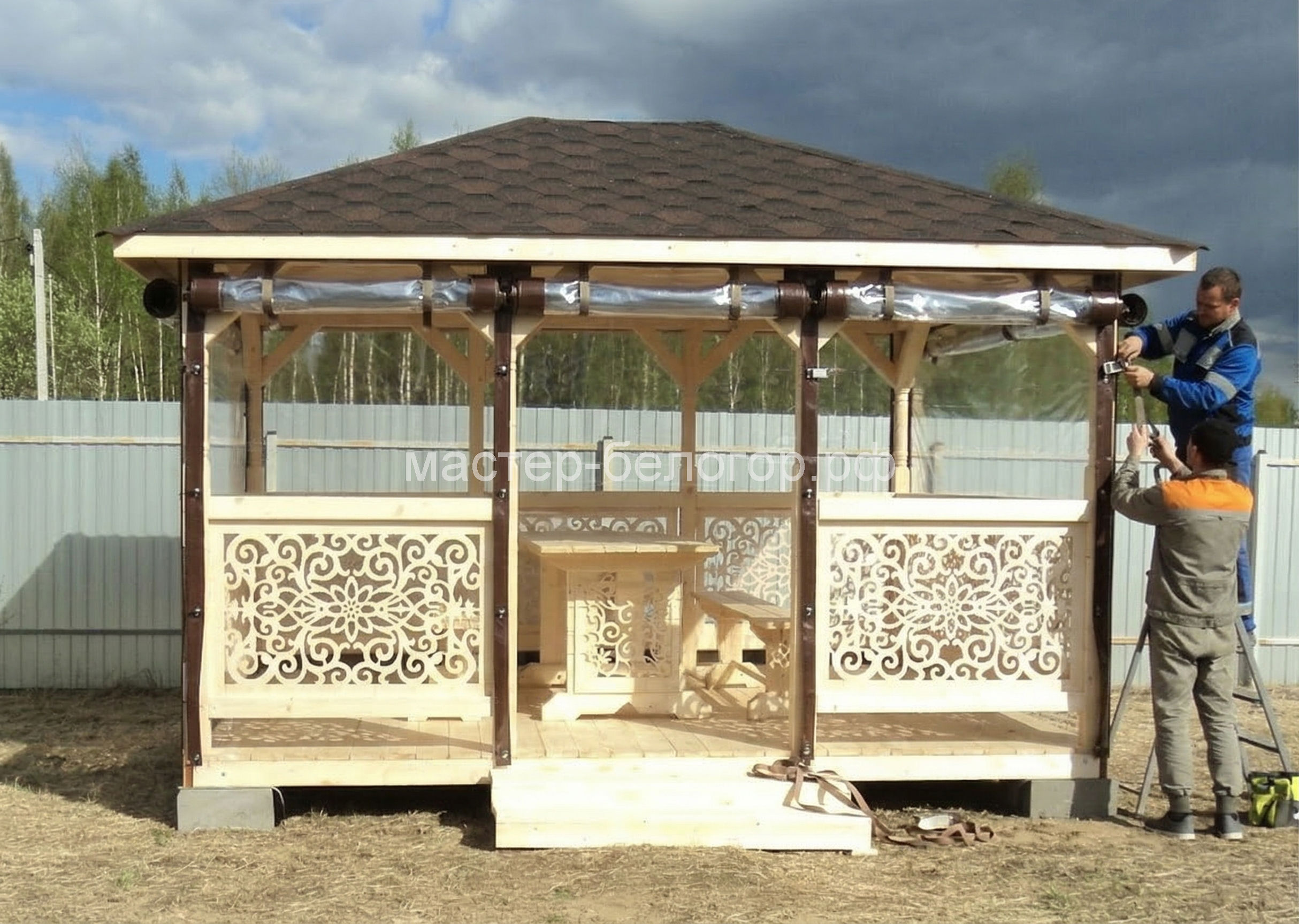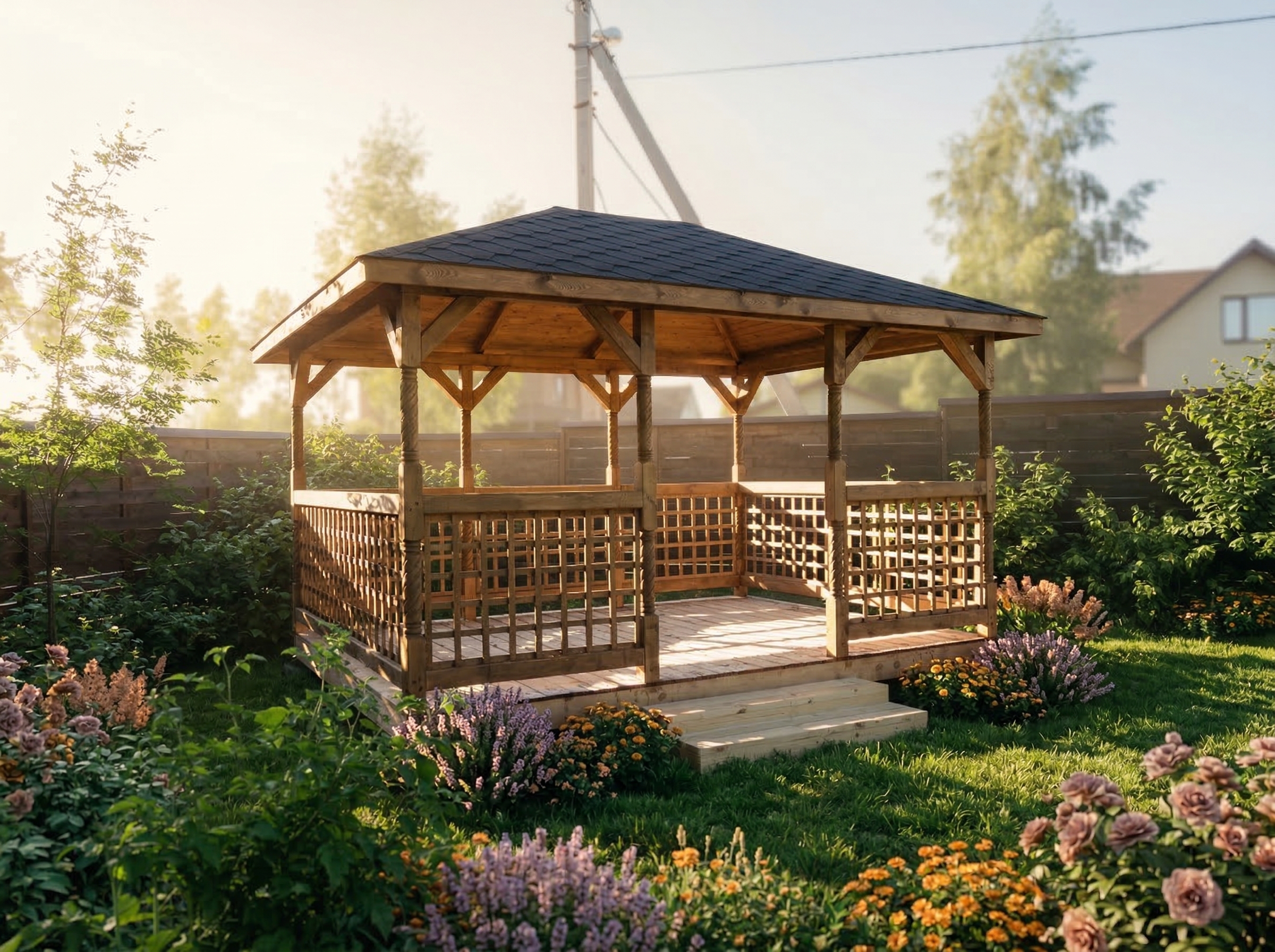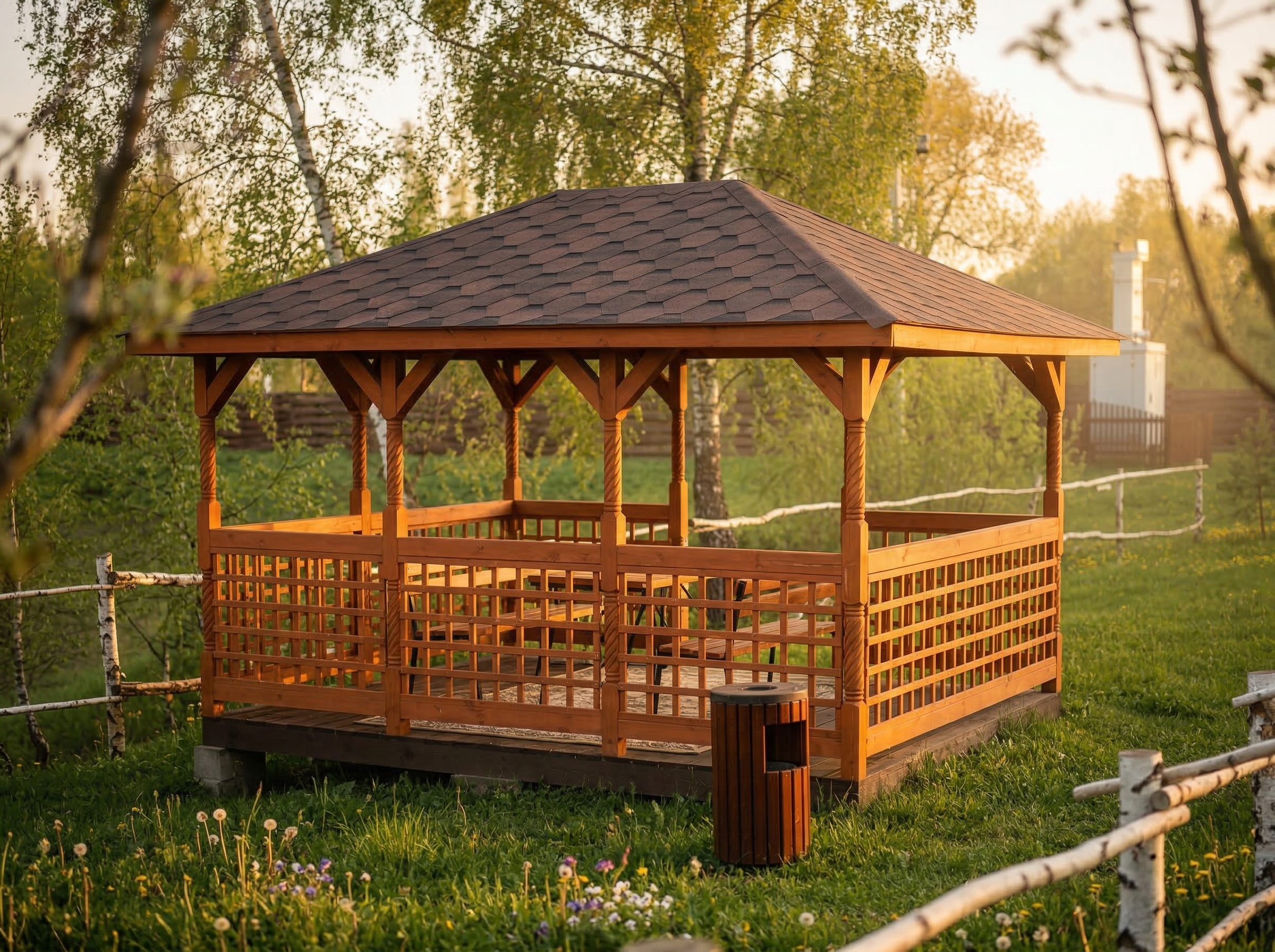 Беседка поставляется без окраски