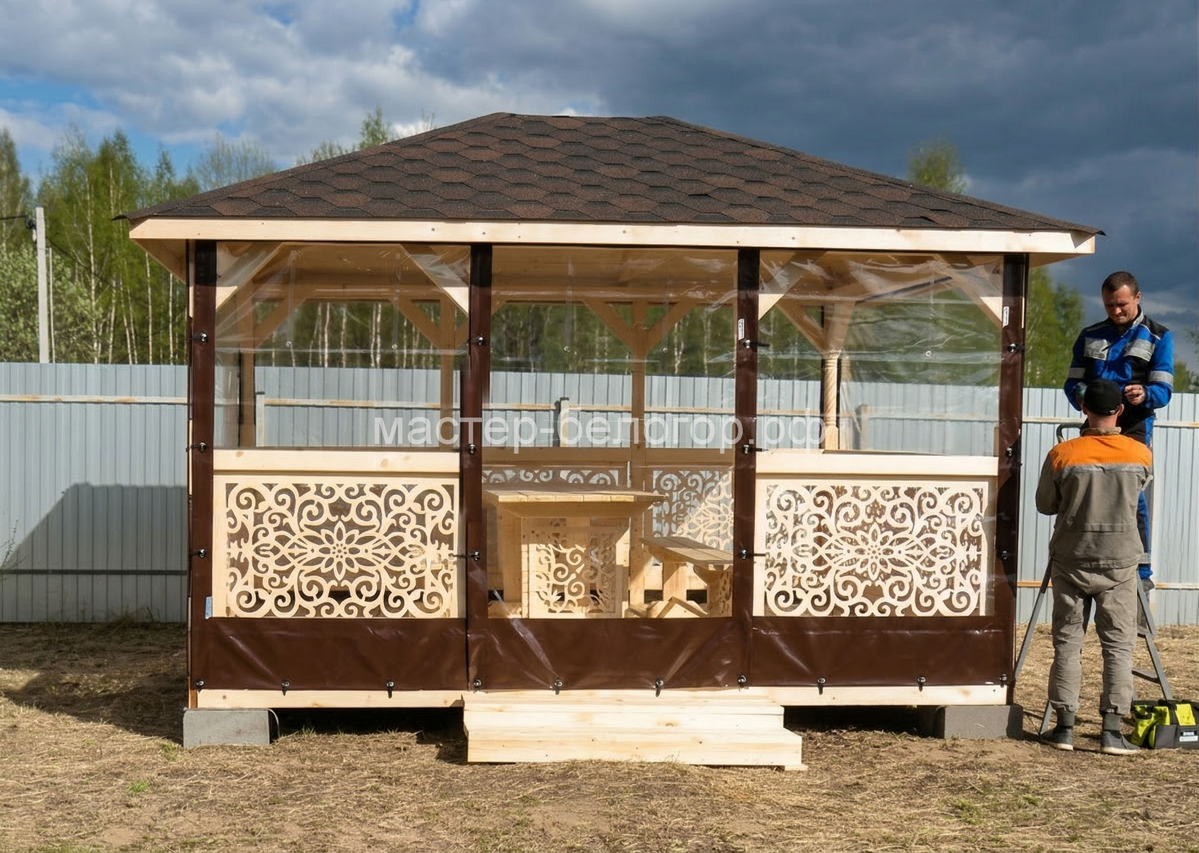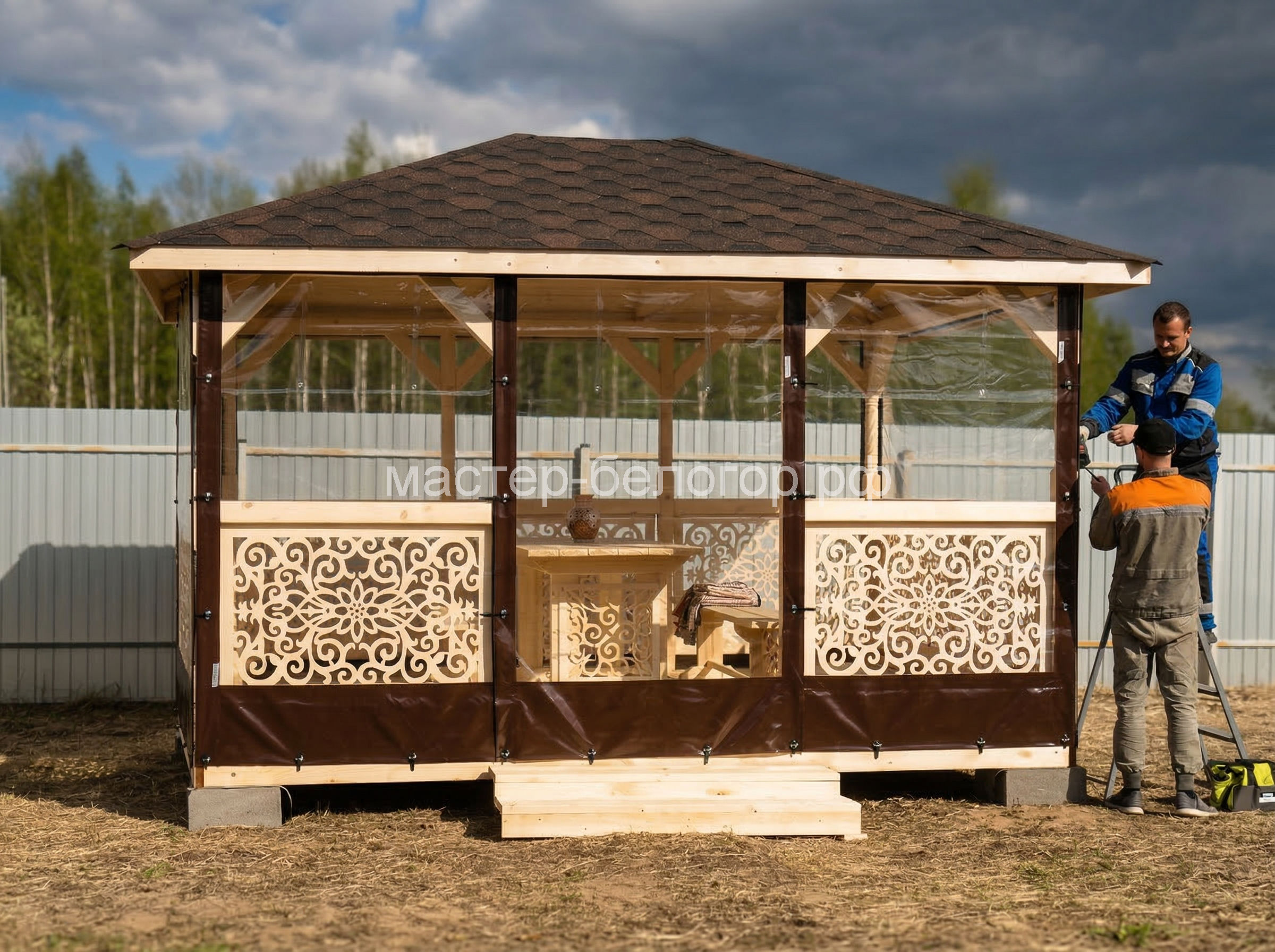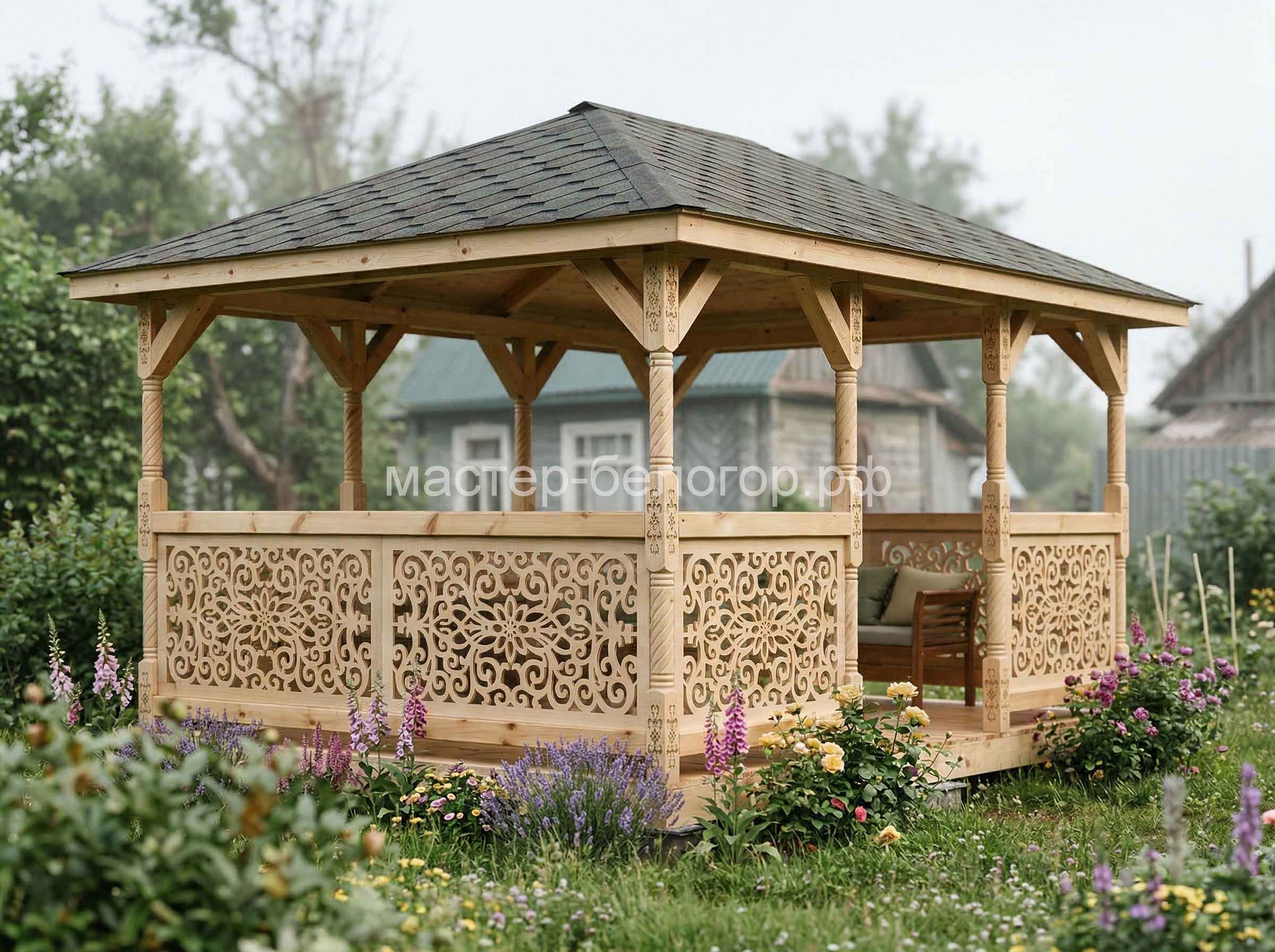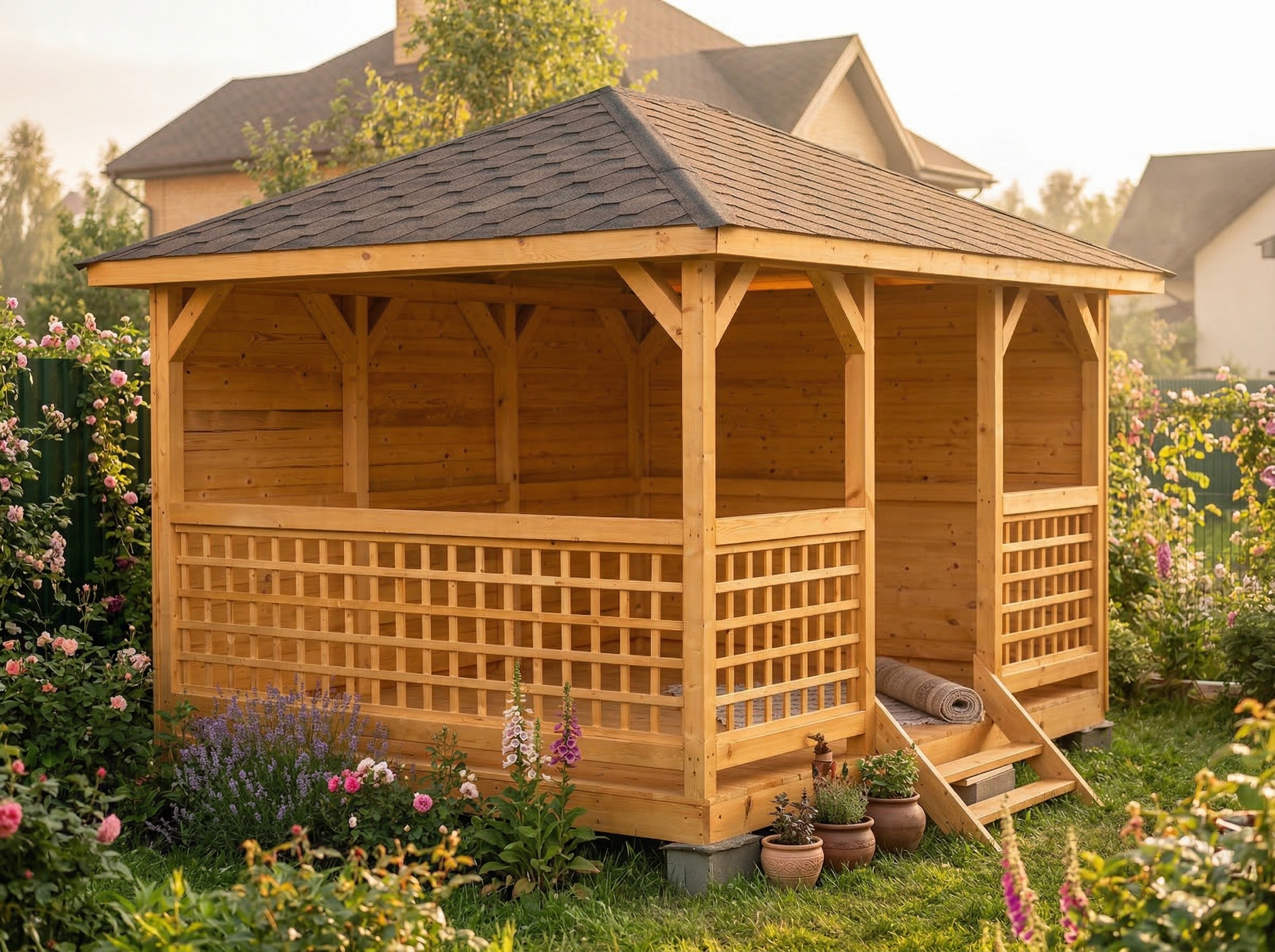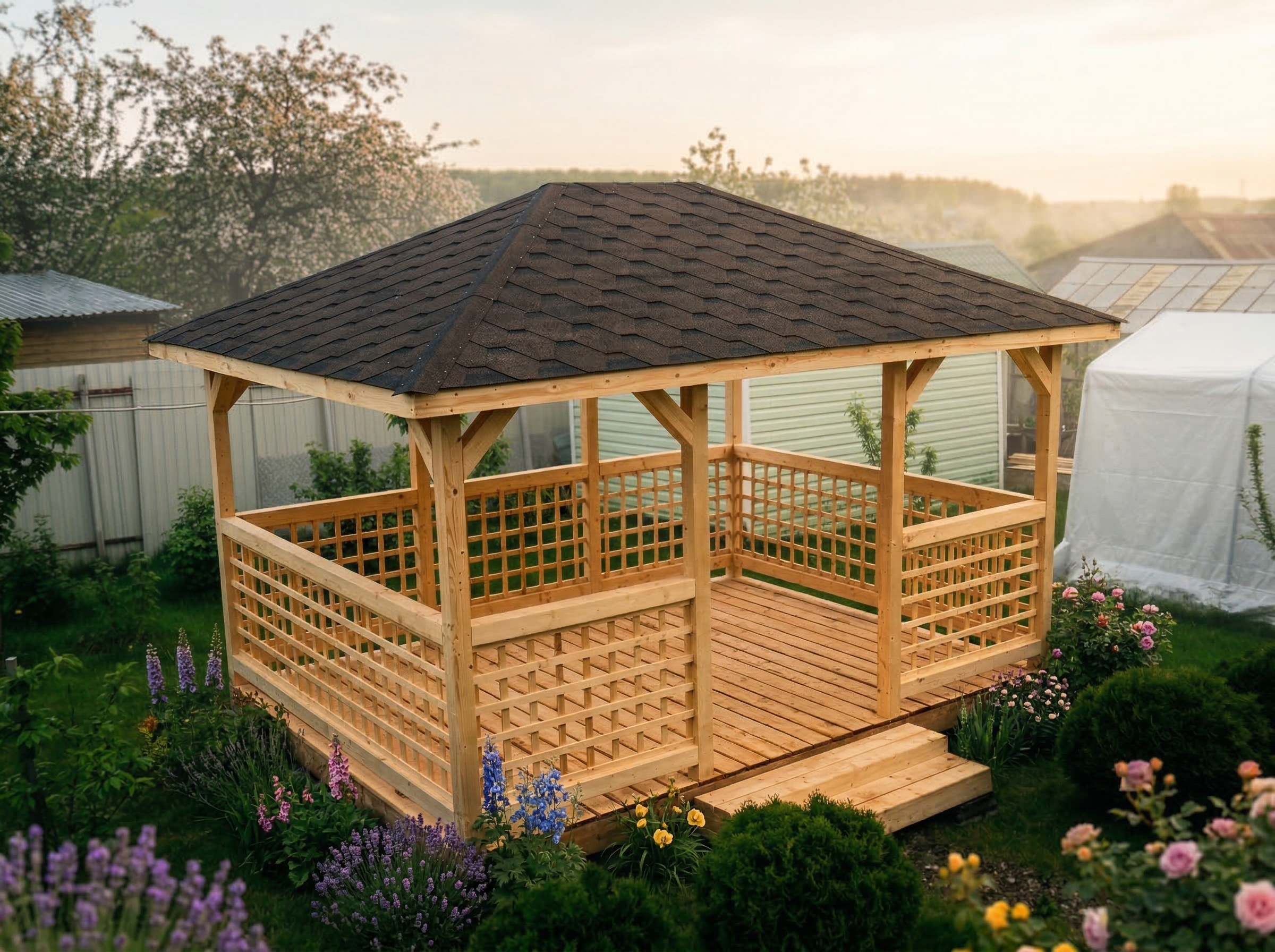 Беседка поставляется без окраски