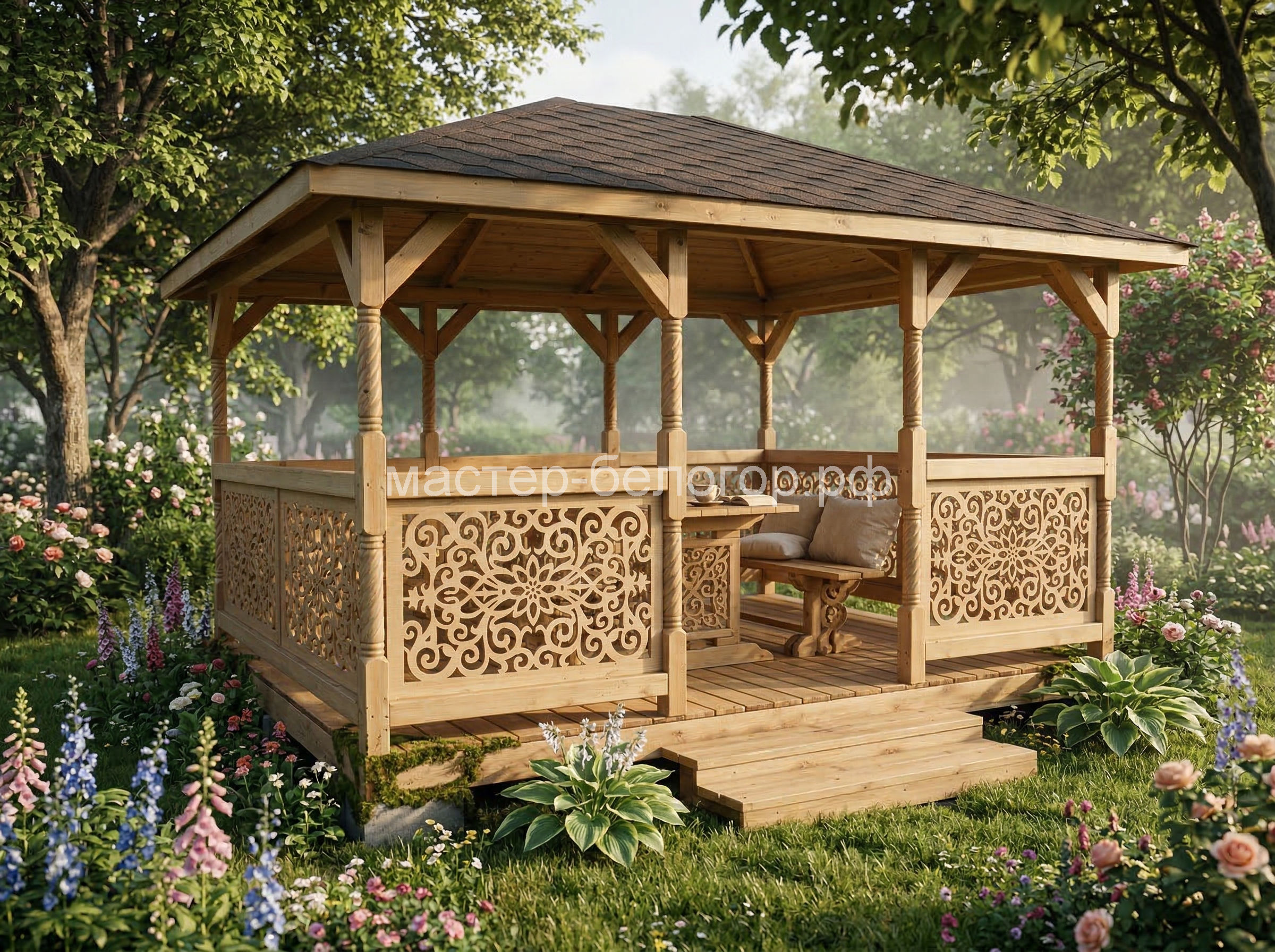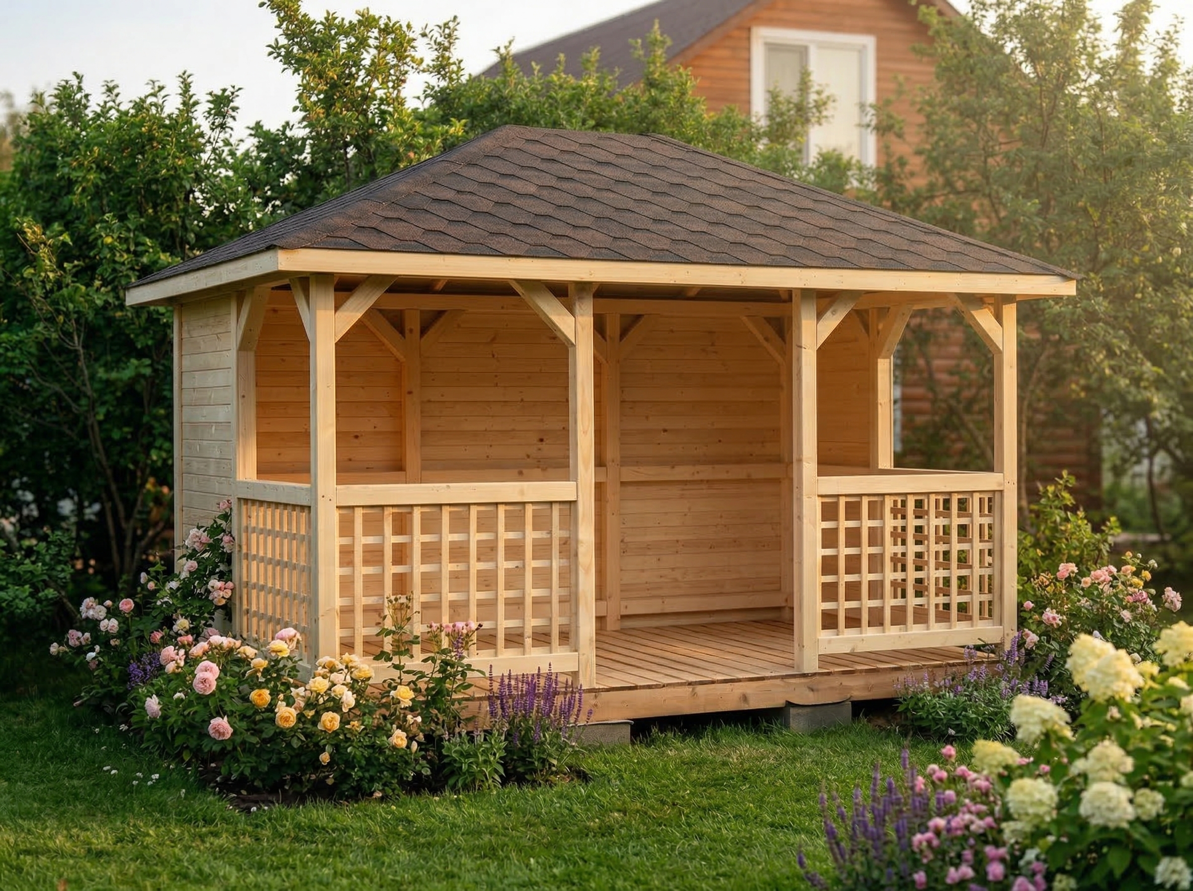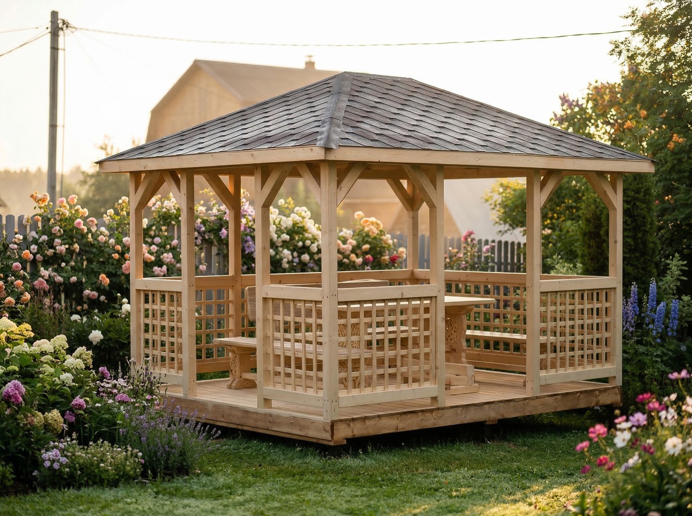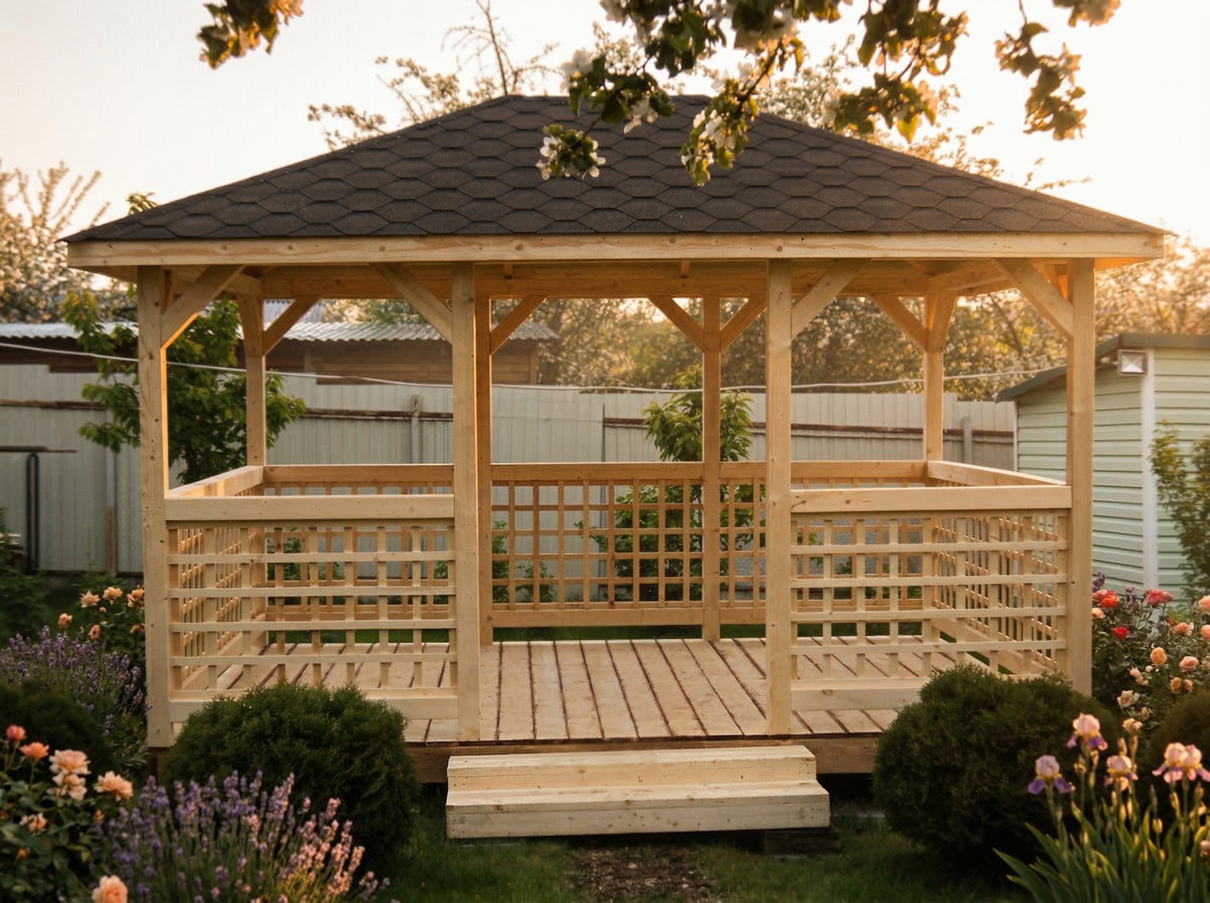 Беседка поставляется без окраски