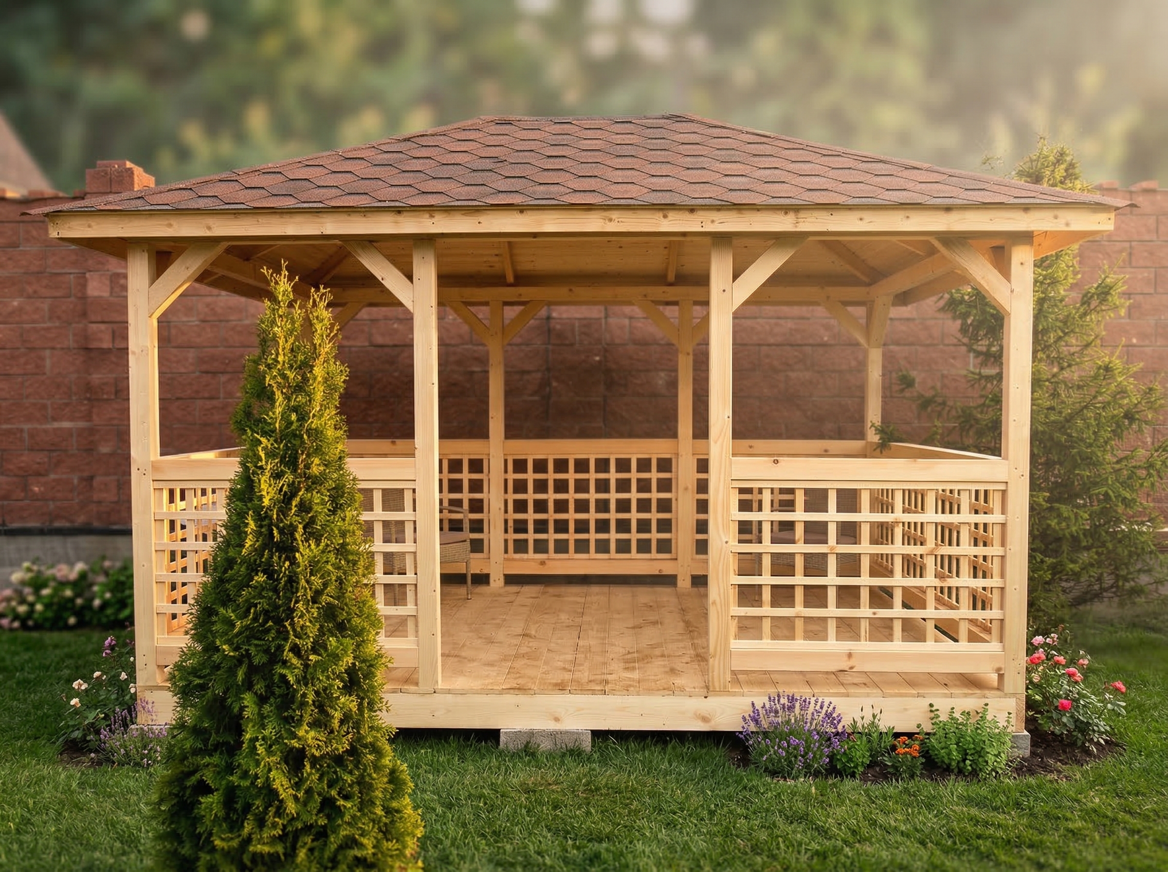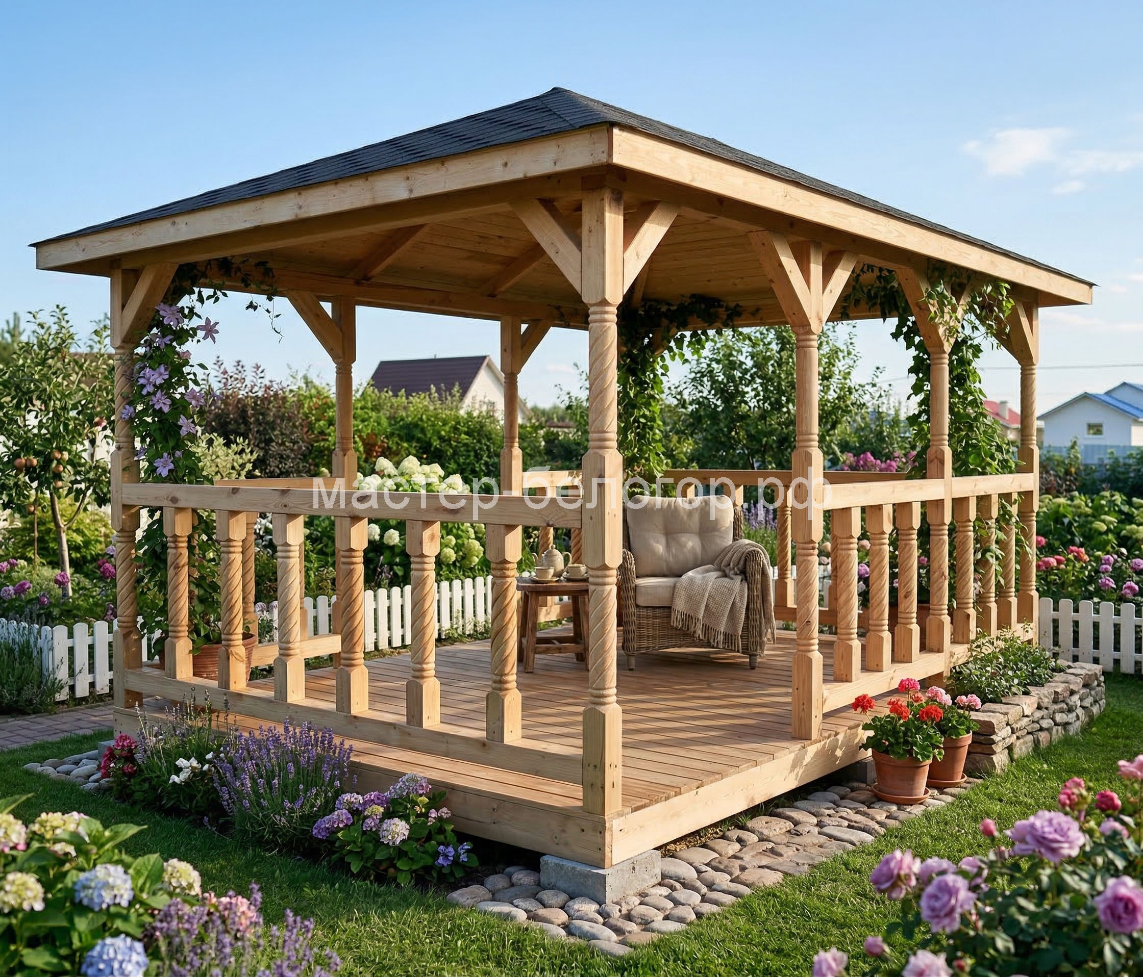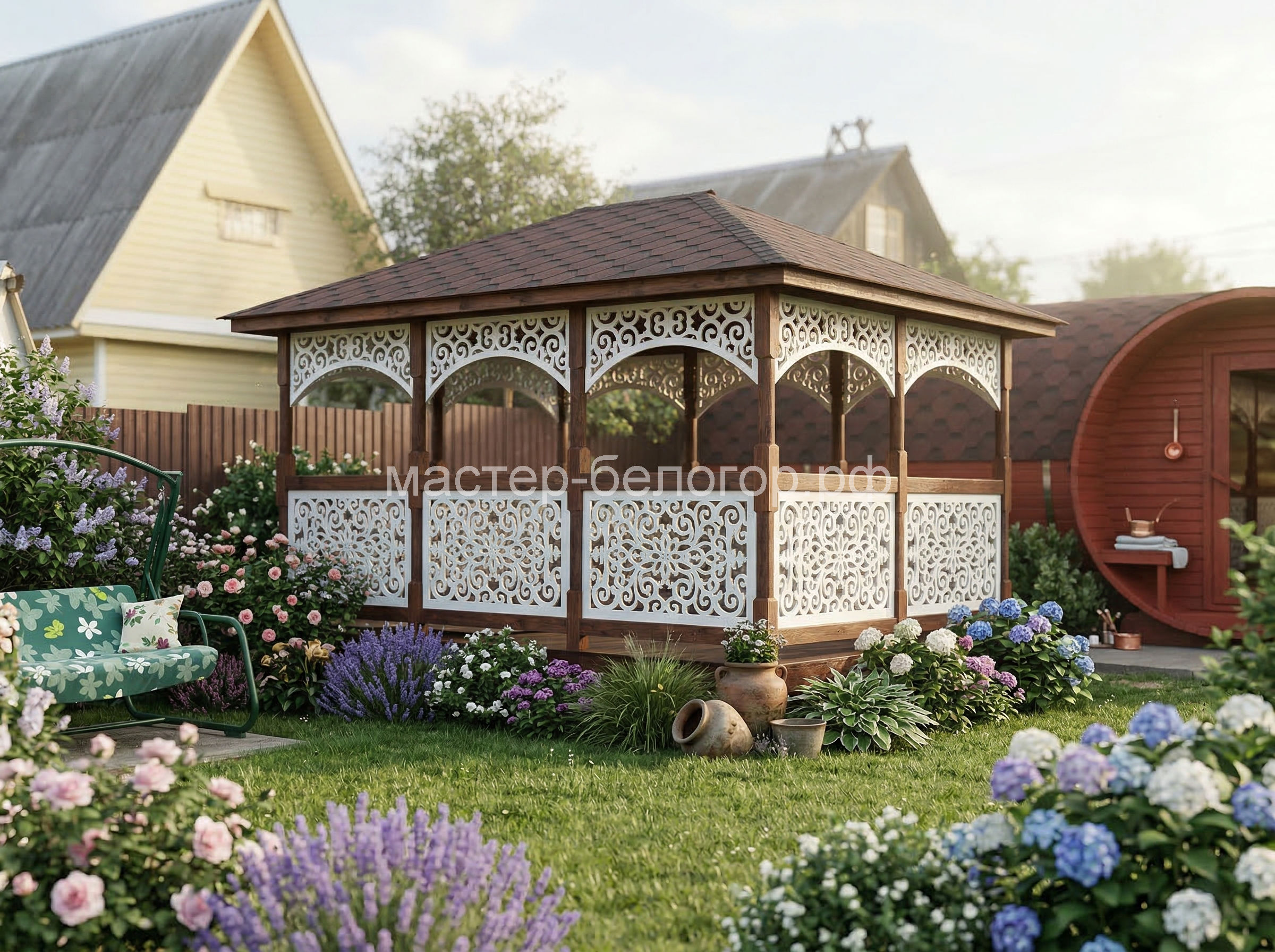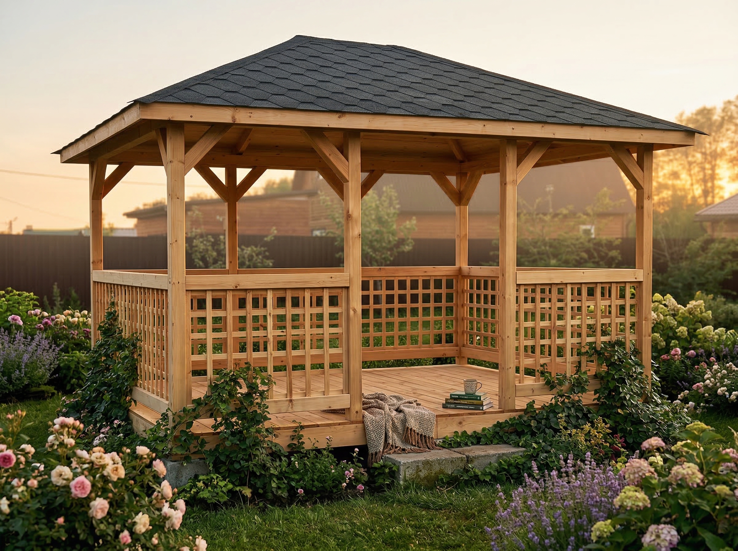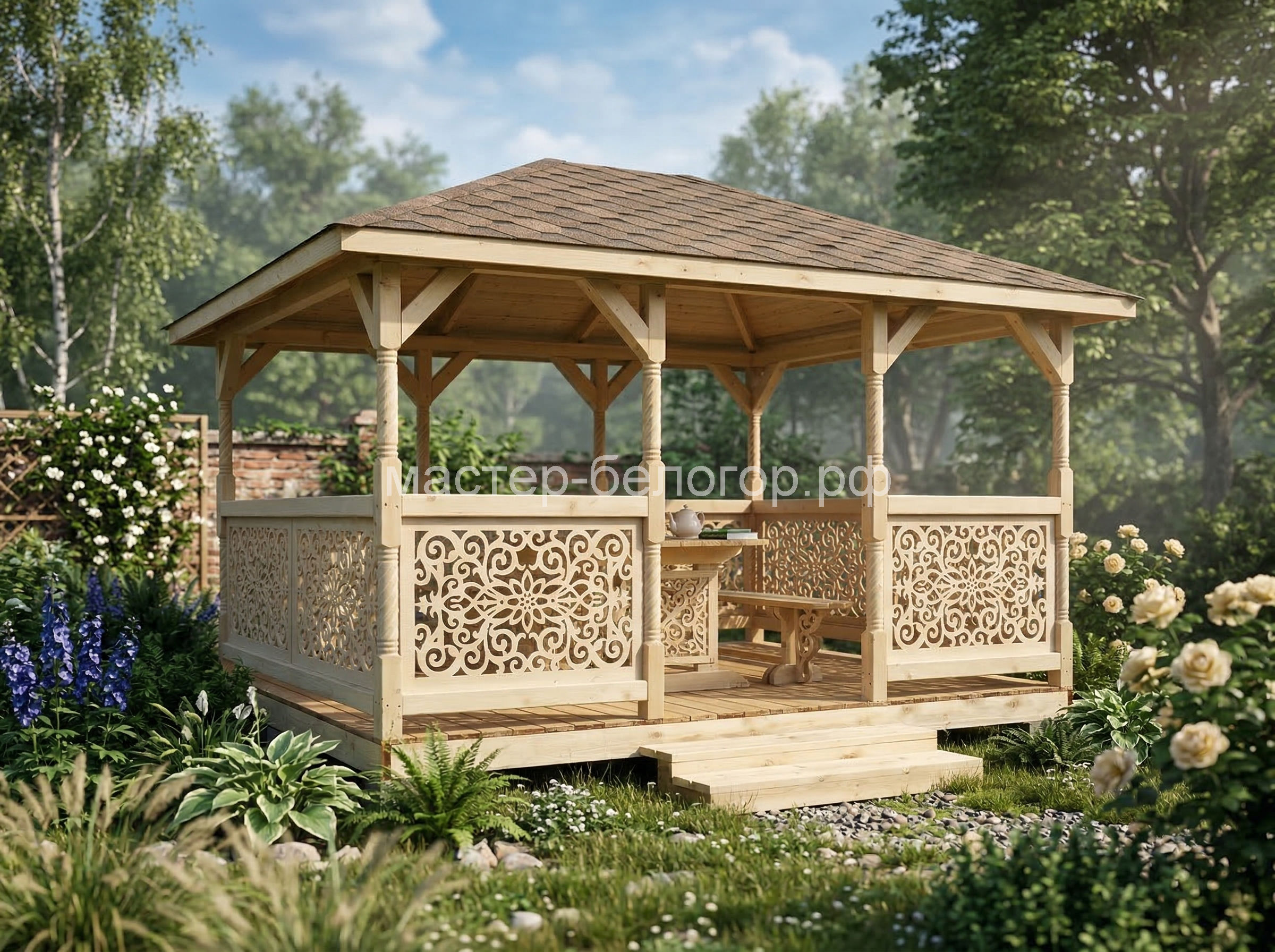 Беседка поставляется без окраски