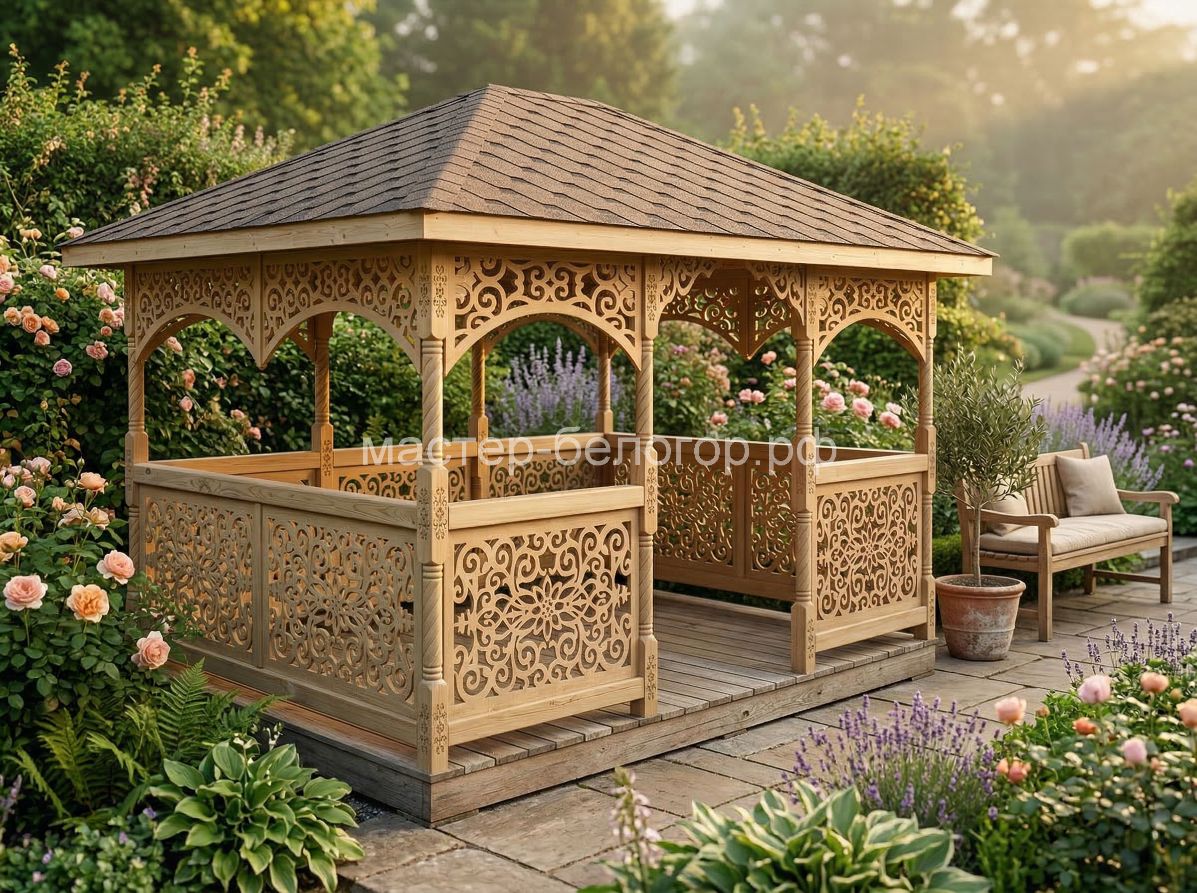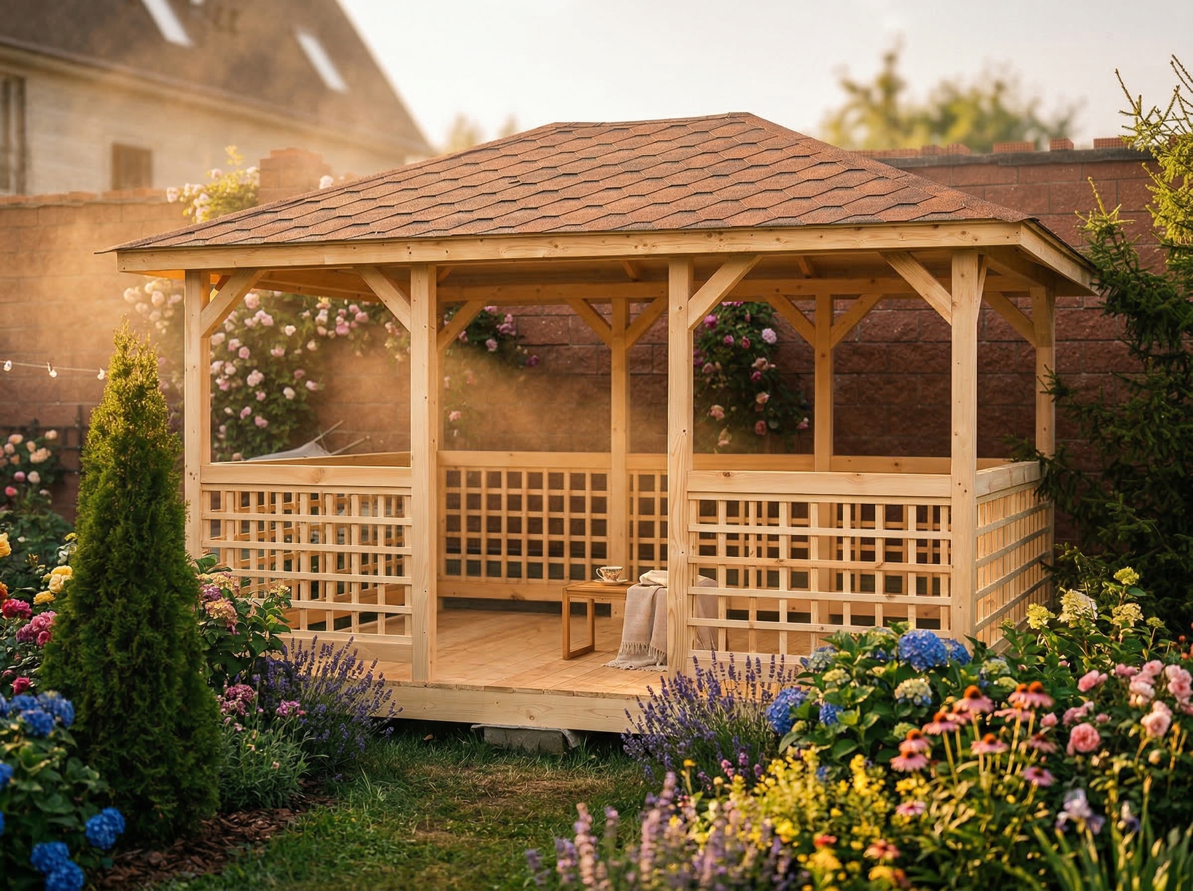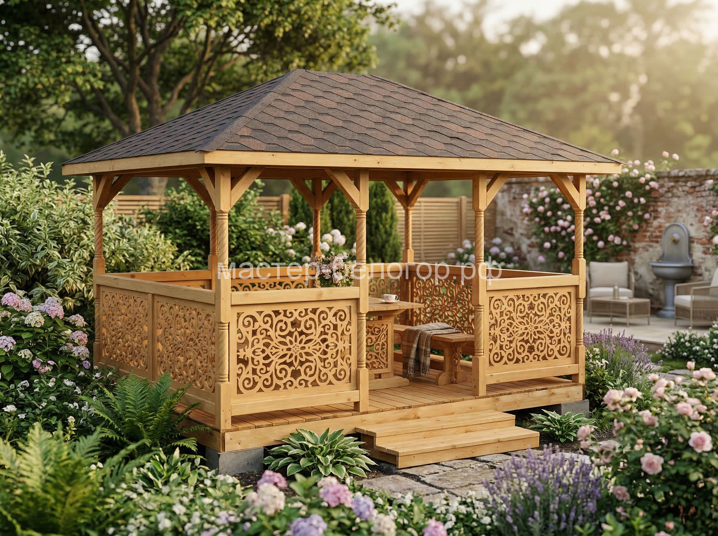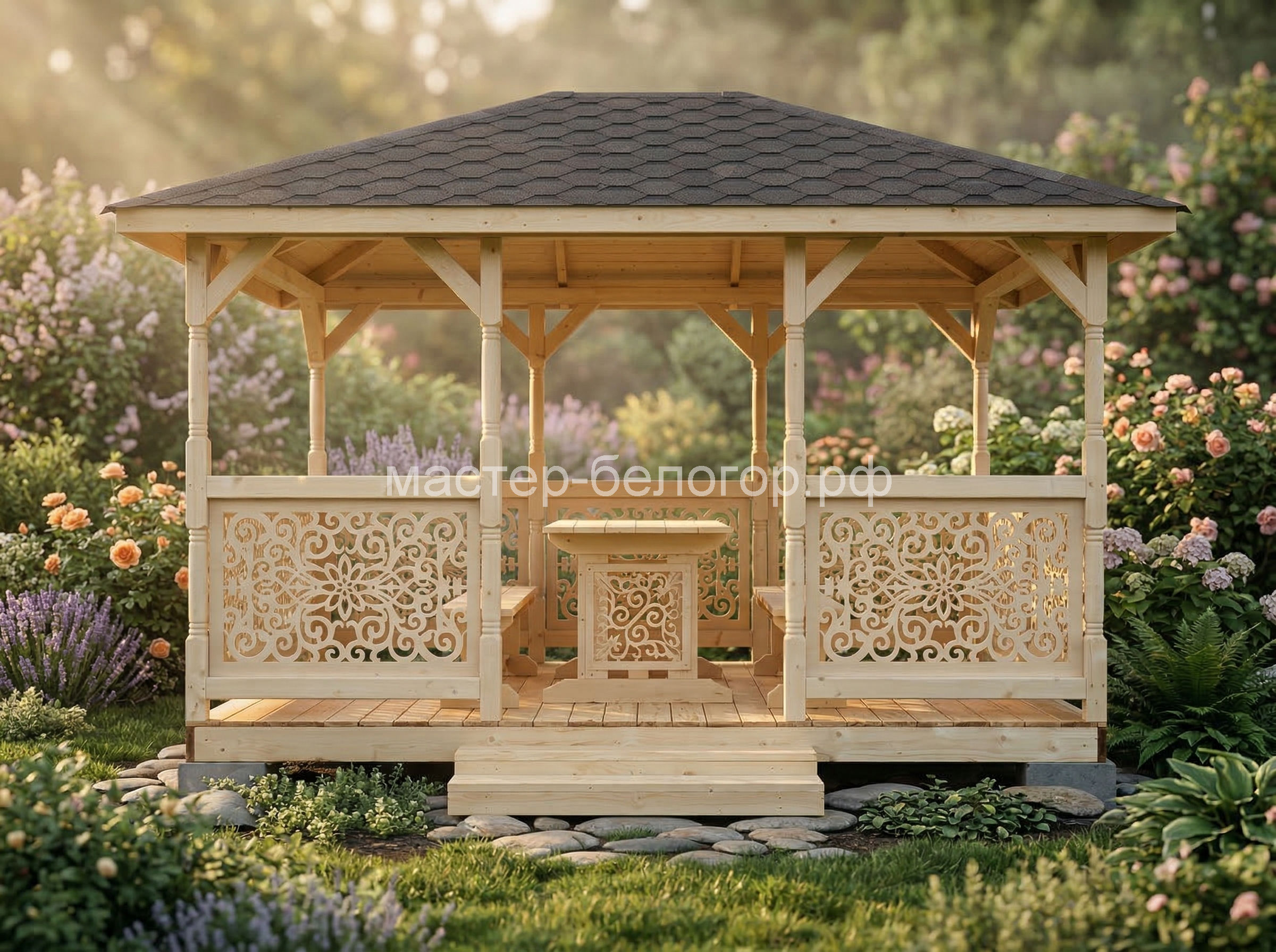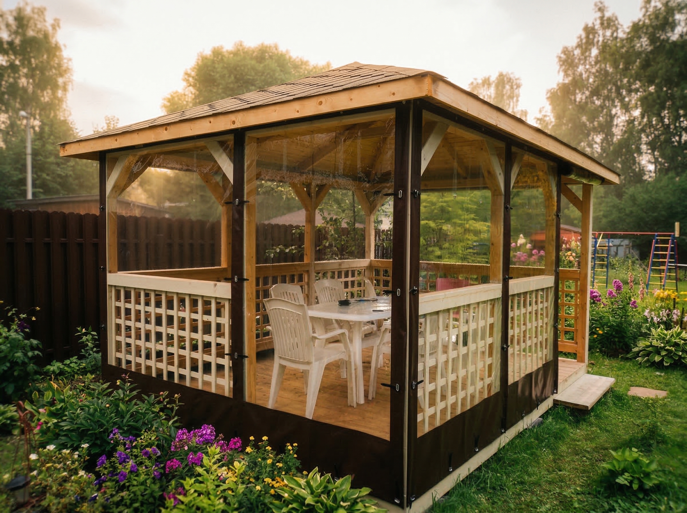 Беседка поставляется без окраски