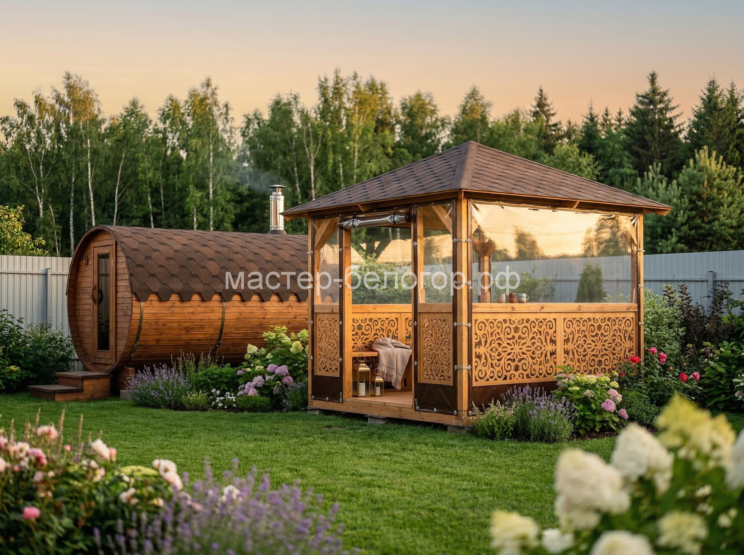 4х-гранная крыша,мягкая кровля,(панели,cтолбы)